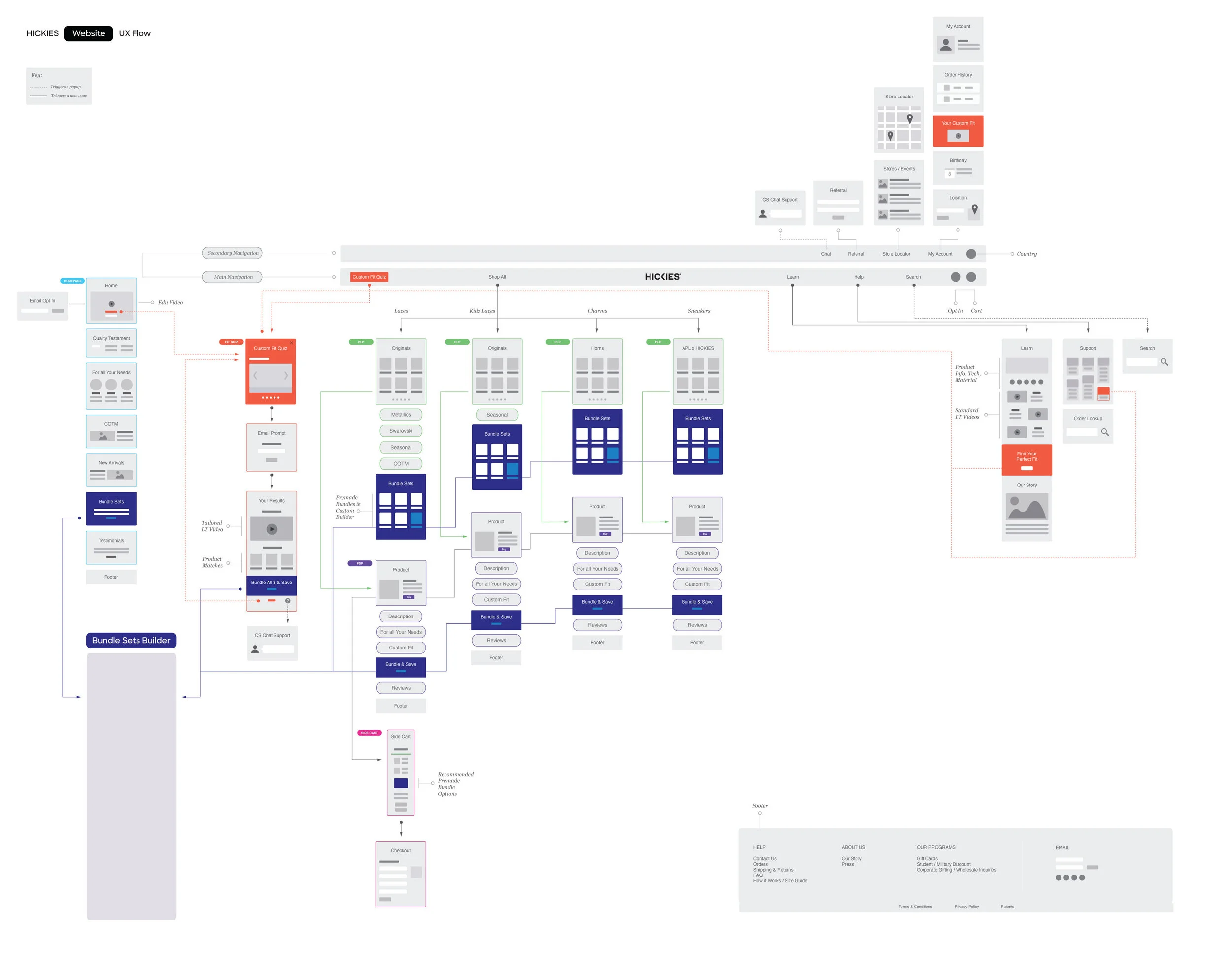 HICKIES reimagines the shoelace and it was time to reimagine the digital storefront. Together with the Marketing, Ecommerce, IT teams as well as the cofounders, I designed and rethought the user experience for HICKIES.com and its 6 subsidiary websites. Utilizing data and a mobile first approach I designed the website to be as simple as possible while maintaining our recently refreshed brand guidelines in order to increase the average order value and conversions.